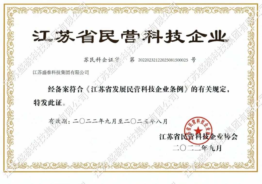喜報(bào) | 盛泰科技榮獲“江蘇省民營科技企業(yè)”稱號(hào)!